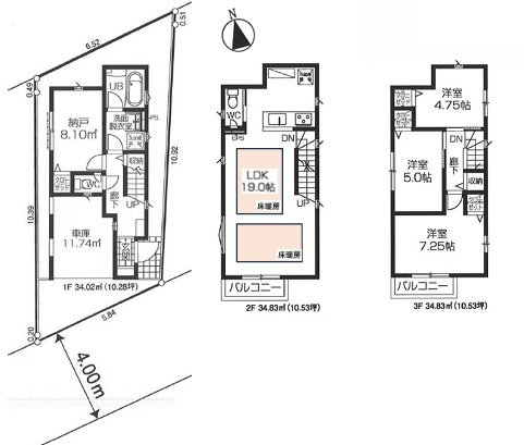 | 建物面積/坪数 | 103.68㎡ / 31.36坪 | 土地面積/坪数 | 64.63㎡ / 19.55坪 |