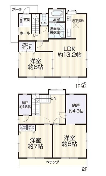 LDK 13.2帖 / 洋室 8.0帖 / 洋室 7.0帖 / 洋室 6.0帖 / S(納戸) 4.3帖 / S(納戸) 1.5帖 / |