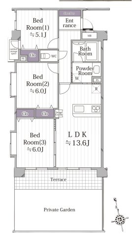 LDK 13.6帖 / 洋室 6.0帖 / 洋室 6.0帖 / 洋室 5.1帖 / |