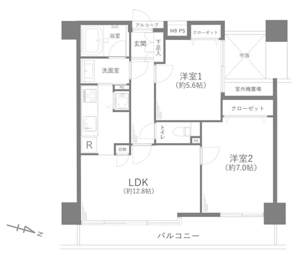 LDK 12.8帖 / 洋室 5.6帖 / 洋室 7.0帖 / |