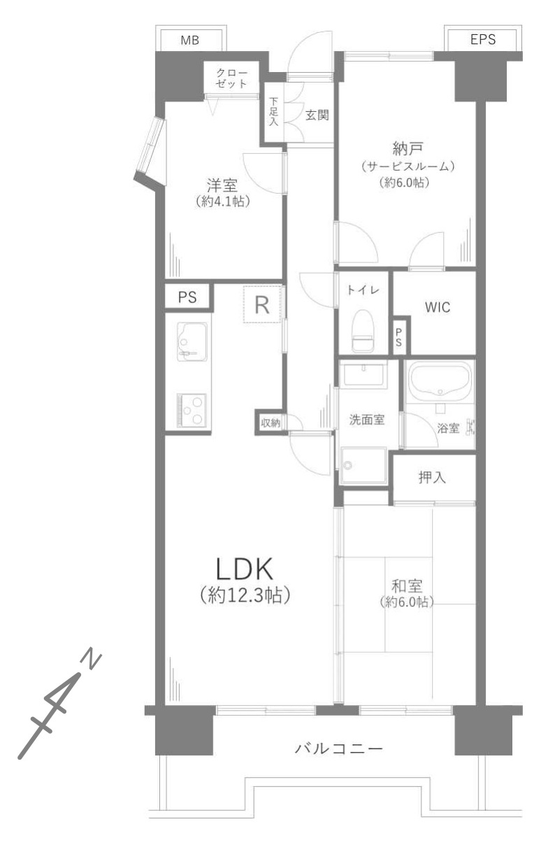LDK 12.3帖 / 和室 6.0帖 / 洋室 4.1帖 / S(納戸) 6.0帖 / |