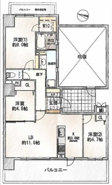 | 専有面積 | 76.25㎡ | バルコニー面積 | 20.35㎡ |