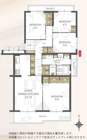 LDK 14.7帖 / 洋室 8.4帖 / 洋室 6.2帖 / 洋室 5.4帖 / 洋室 4.7帖 / |