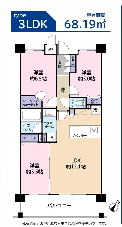 | 専有面積 | 68.19㎡ | バルコニー面積 | 11.02㎡ |