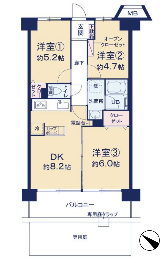 DK 8.2帖 / 洋室 6.0帖 / 洋室 5.2帖 / 洋室 4.7帖 / |