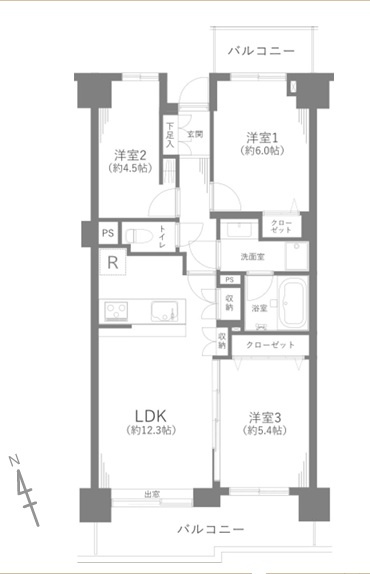 LDK 12.3帖 / 洋室 4.5帖 / 洋室 5.4帖 / 洋室 6.0帖 / |