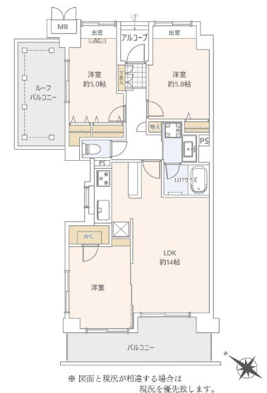 LDK 14.0帖 / 洋室 5.8帖 / 洋室 5.0帖 / |