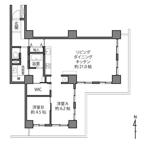 LDK 21.0帖 / 洋室 6.2帖 / 洋室 4.5帖 / |