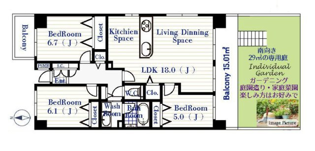LDK 18.0帖 / 洋室 6.7帖 / 洋室 6.1帖 / 洋室 5.0帖 / |