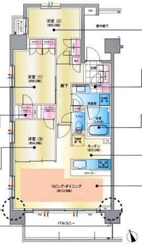 LDK 12.6帖 1室 / 洋室 5.5帖 1室 / 洋室 6.0帖 1室 / 洋室 4.5帖 1室 / |