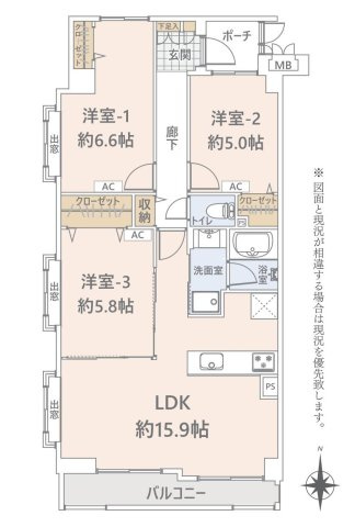 LDK 15.9帖 / 洋室 5.0帖 / 洋室 5.8帖 / 洋室 6.6帖 / |