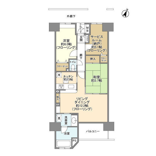 LD 12.2帖 / K 3.3帖 / 洋室 6.0帖 / 和室 5.7帖 / S(納戸) 5.1帖 / |